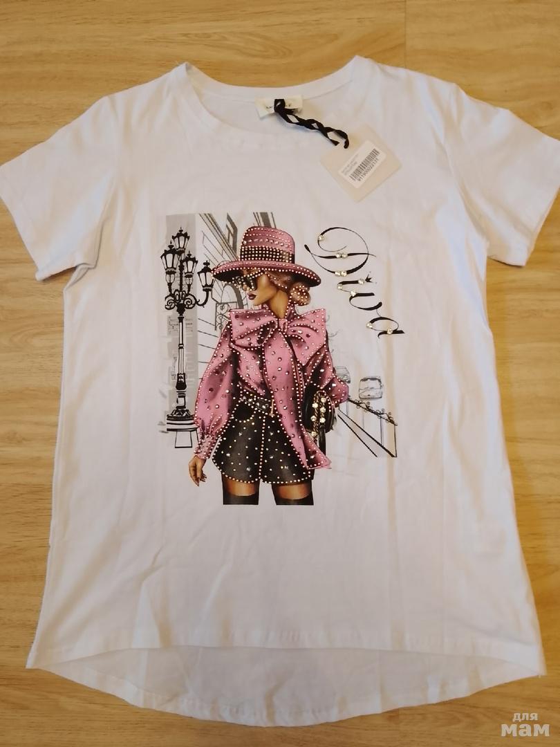 МIСHELLЕ! Италия! Размер идет 42-46.Новая коллекция 2022 года Очень красивая! Сзади идёт подлинне. Стразы,камни.В ней вы без внимания не останетесь. У нас в магазине такая же стоит 4900 точно такая же футболочка. Цена 2500+ почта.Скидка 6-7 марта 2000+ почта