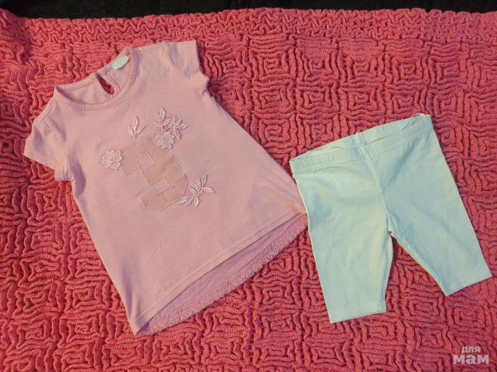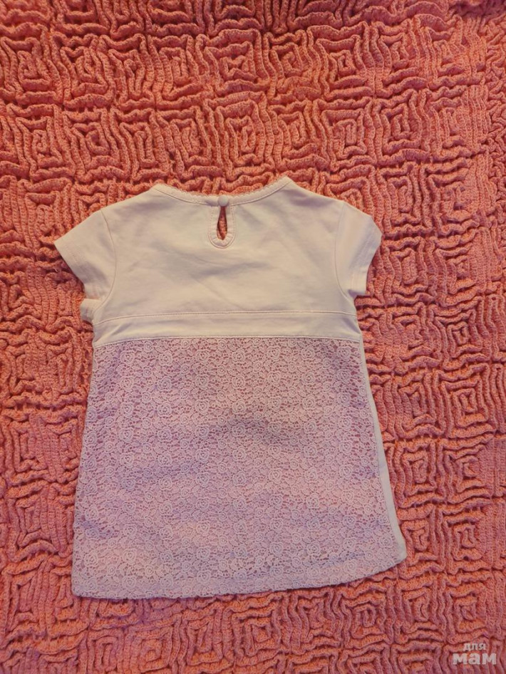 Костюм Fun fun маркировка 12 мес. Бирки сняли, но так и не одели. Розовая туника, сзади кружево и белые бриджи.