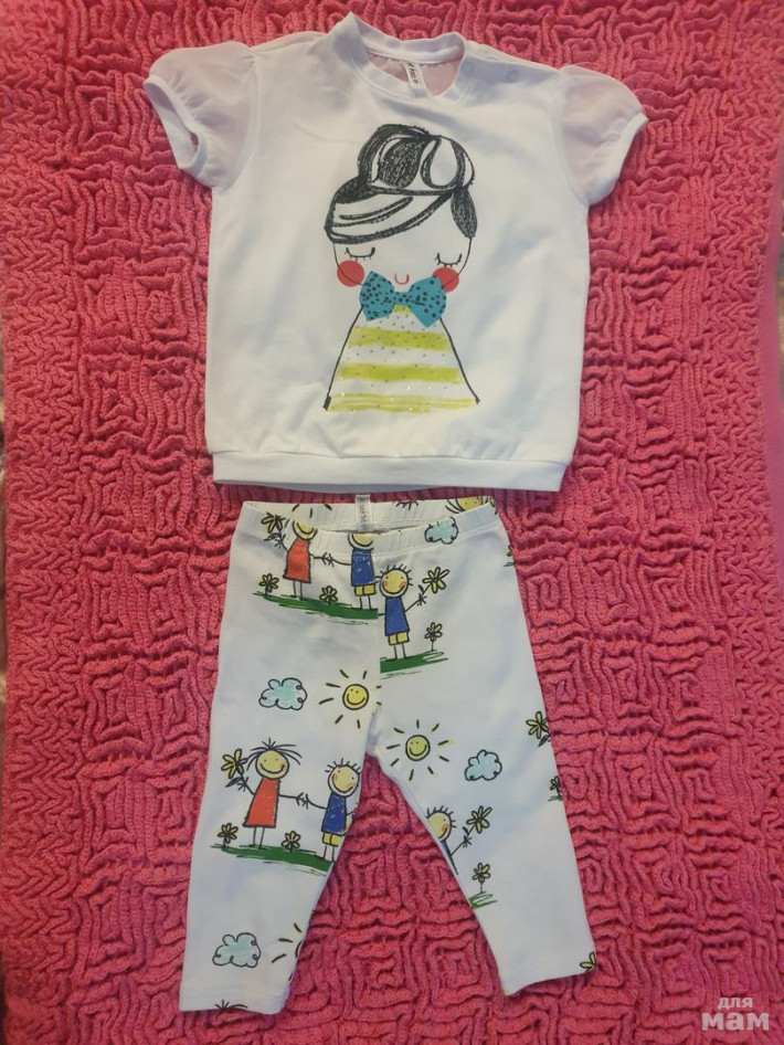 Костюм To be too (Италия), маркировка 9 мес. В идеале. На футболочке стразы, рукавчики шифоновые