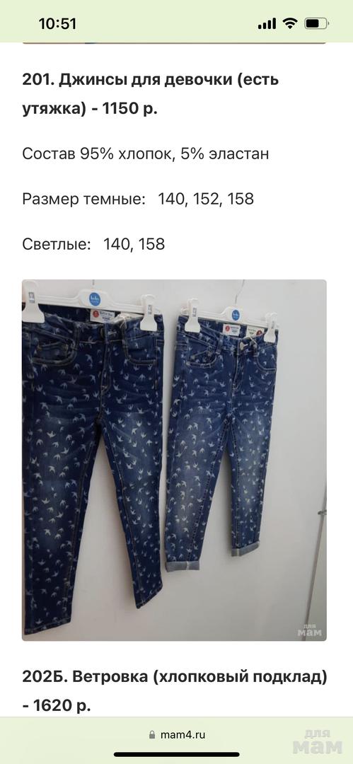 201. Джинсы для девочки (есть утяжка) - 1150 р.