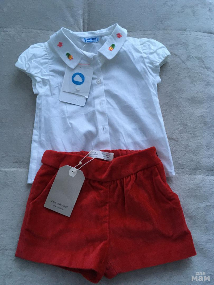 Блузка майорал -750 руб шорты Зара 9-12 мес бархатные плотные -700 руб