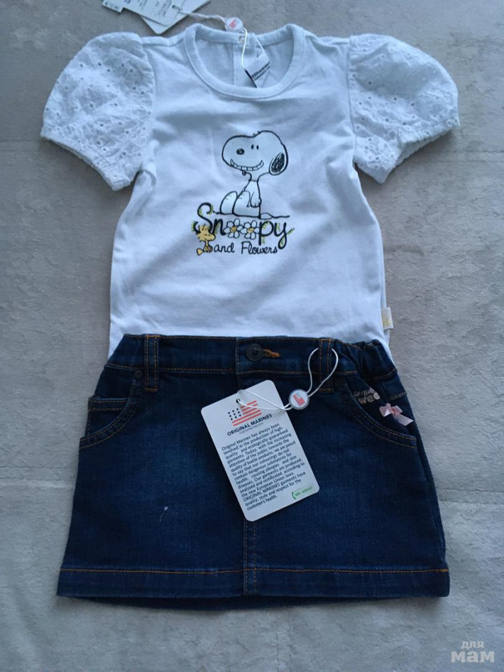 Очень красивый комплект футболочка и джинсовая юбочка джинс качественный комплектом 1300 руб