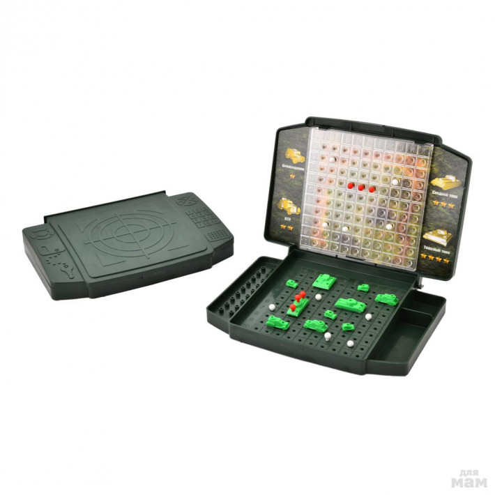 В комплекте: 2 чемоданчика с игровыми полями,10 танков для каждого игрового поля,160 белых фишек,40 красных фишек.