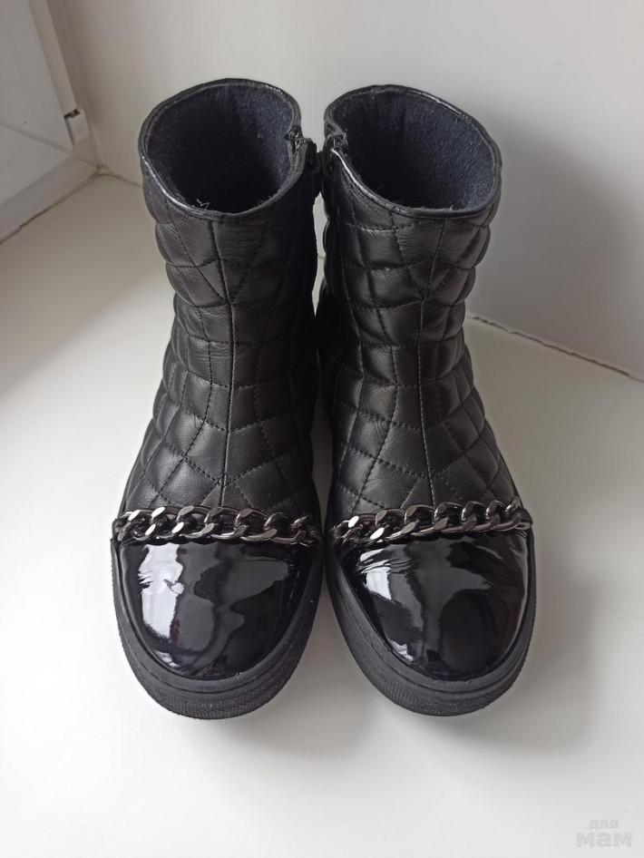В отличном состоянии! Покупали очень дорого, но успели только осенью прмодничать..малы :( Размер 36, но стелька 22,5 см до загиба.Советую на ножку 21,5-22 см максимум.Внутри флис.