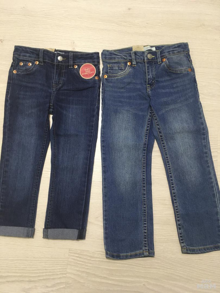 Продам двое джинс Левис. Тёмные с подворотом на 4 года. Замеры длина 57 см, шаговый 37,5. Пояс 26 см. Есть утяжки.