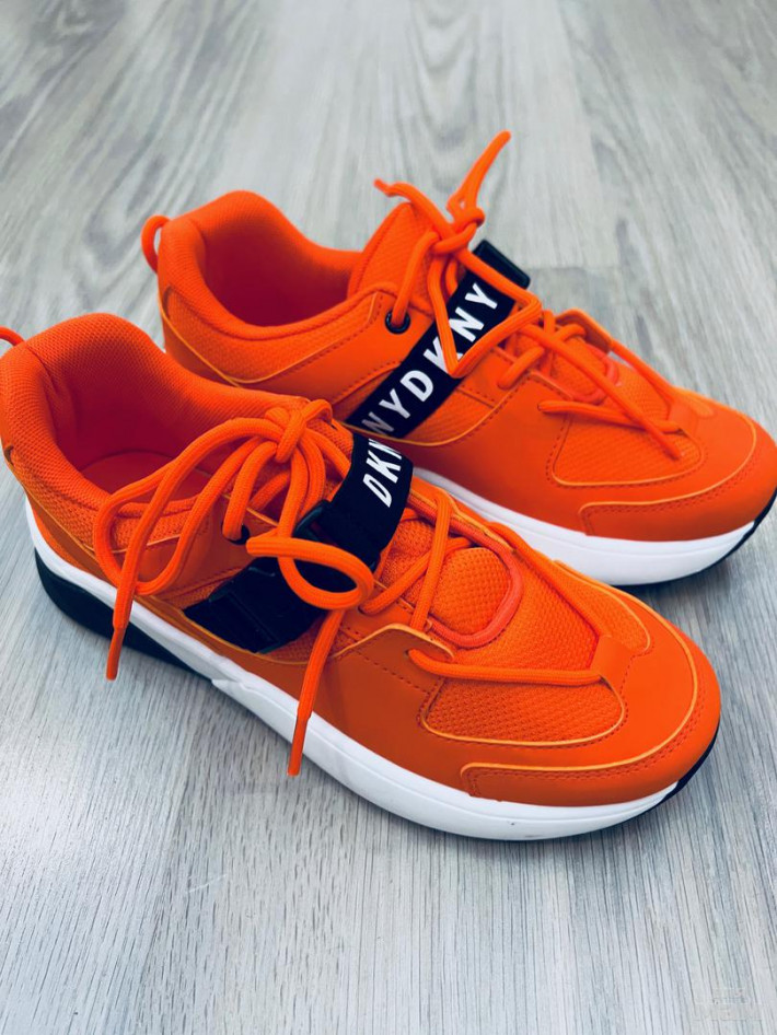 Новые брендовые яркие кроссовки DKNY, р.38 (по стельке 25 см), 8500 р. К кроссовкам могу отдать спортивный костюм. (Отдельно спортивный костюм и кепка DKNY не продаются)