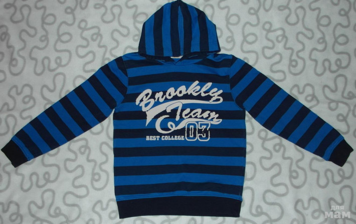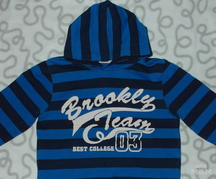 Стильная толстовка с капюшоном Kids в идеальном состоянии. Есть нюанс – спереди потрескался рисунок.