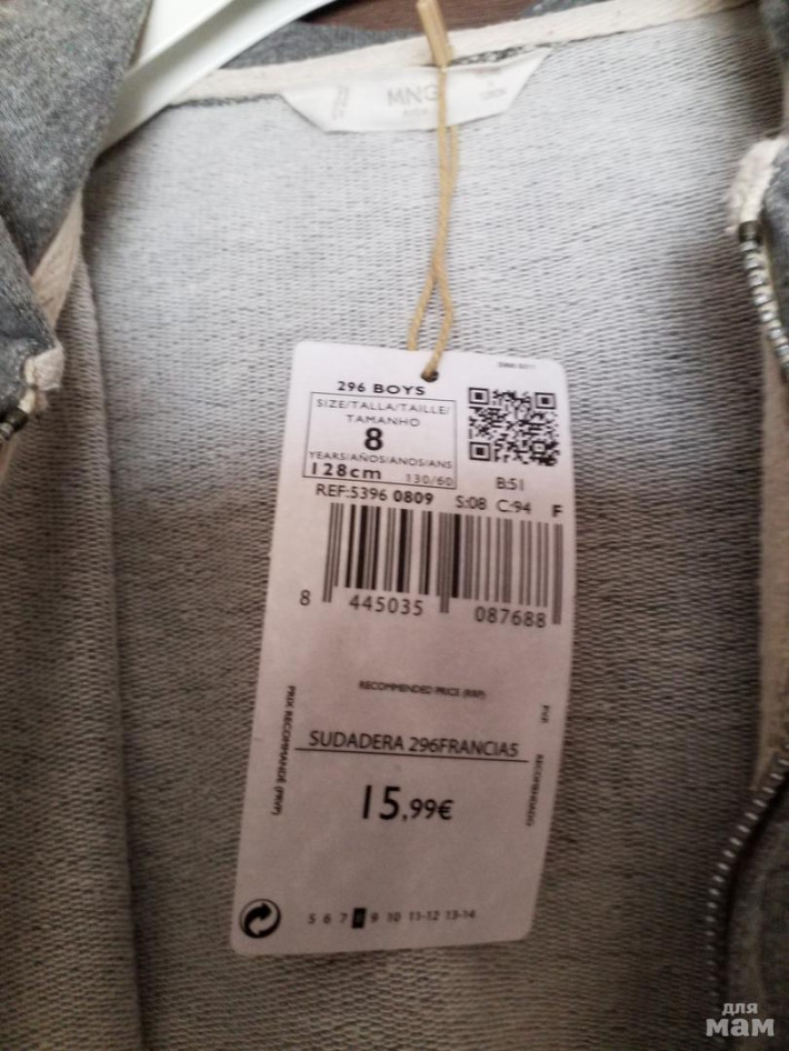 Шикарная толстовка фирмы MANGO. Размер до 128 см -8 лет. Шикарный оргапический хлопок 100%. Ткань футер. Привезла подруга из Англии. Покупалась за 16 £. Состояние отличное, б/у мало, цвет серый, с 2 карманами, с капюшоном, на молнии.