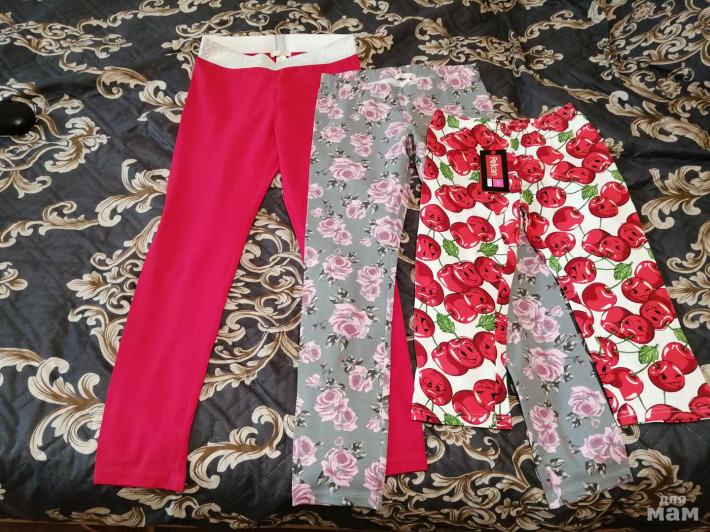 Розовые лосины Juno р 146 новые 92% хлопок Серые с розочками Juno р 146 новые 92% хлопок С вишенками Pelican р 11 новые 95% хлопок Отдельно по 380р, все отдам за 1000р
