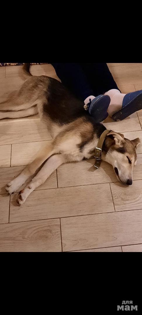 Лее 5-6 мес., она нежный и игривый ребёнок. Уже знает несколько команд, легкообучаема, ладит с кошками. Девочка умненькая и наблюдательная. Размером небольшая, ниже колена. Приучена к выгулу на поводке.