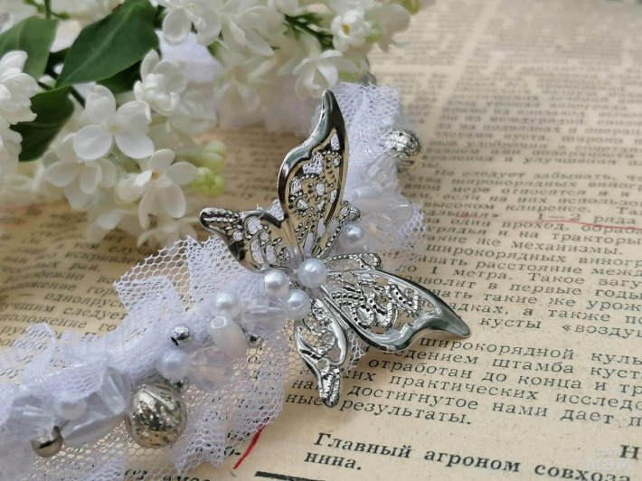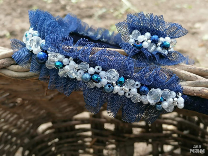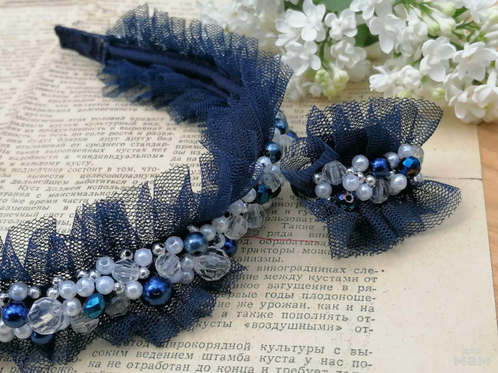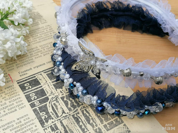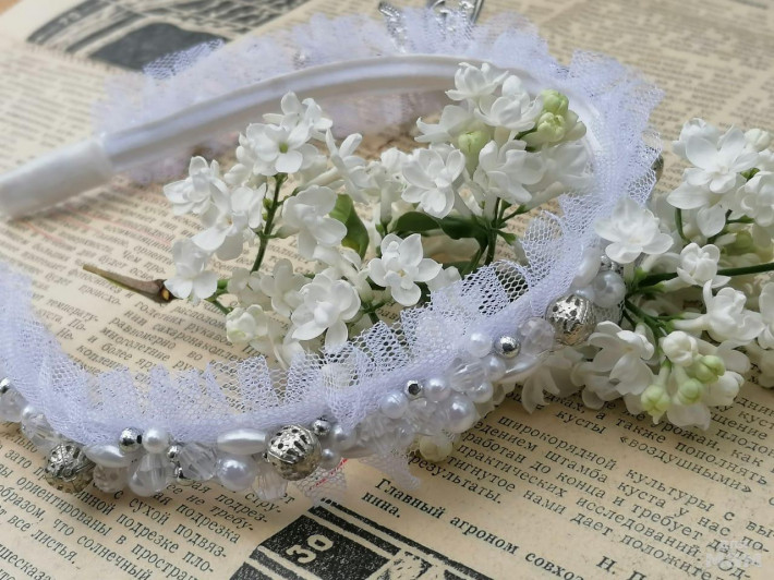 1) Белый. Праздничный вариант с ажурным декором. Граненные бусины с переливом. Ободочек подойдет как в школу на 1 сентября, так и на любой праздник в нее ее стен.