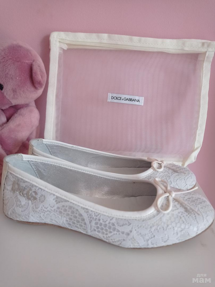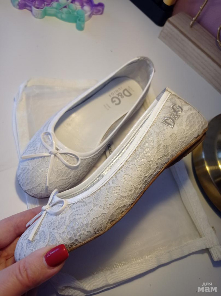 Бу в помещении чуть пожелтели на пятке от времени на 1 туфельке. ..видно только на фото .Сами белые очень нежные -моя не хочет носить. Коробки дг нет есть косметичка. Фактические вид новых. Видно по стельке на подошве есть следы примерок.Не маломерят
