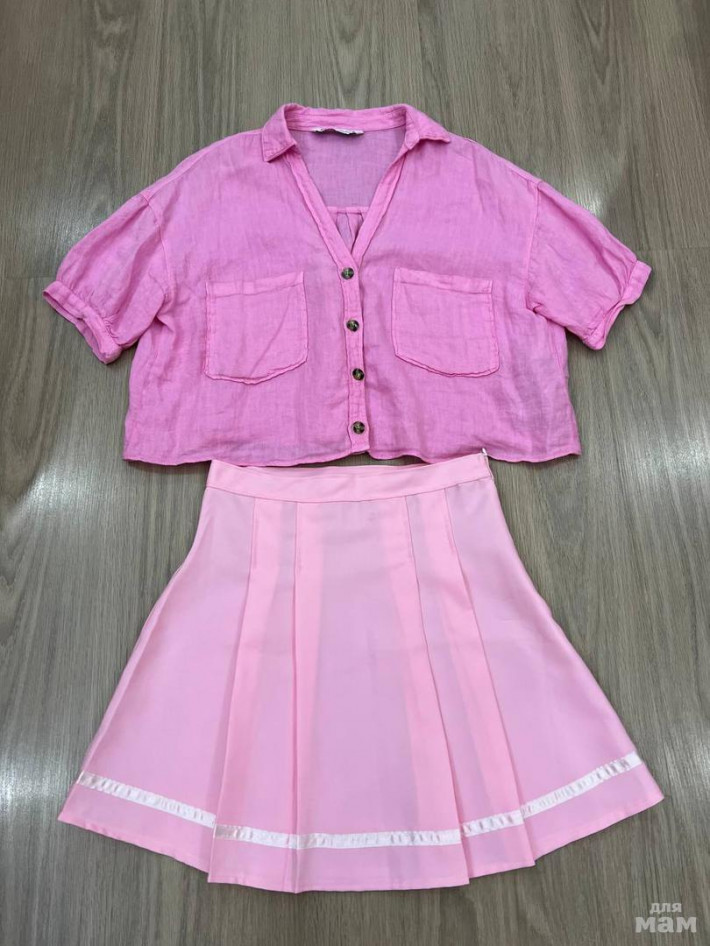 Розовая юбочка в складку, р.S, талия 34, бедра 45, длина 45