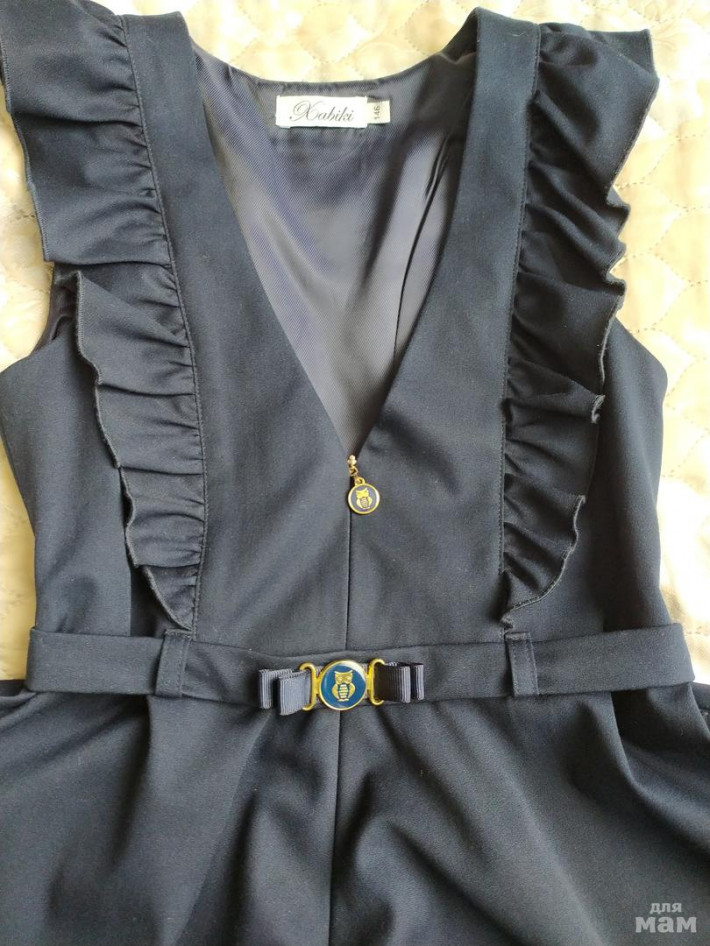 3. Сарафан р. 146. В размер. На стандартную и стройную фигуру. Талия регулируется пояском на пуговках. Застёжка на молнию спереди. Цвет синий