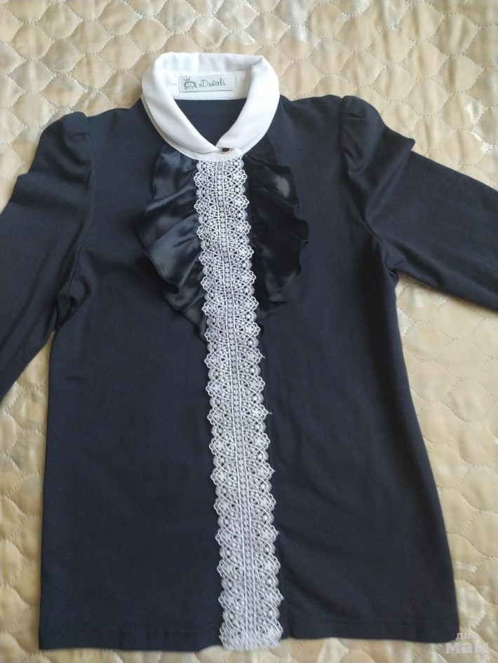 5. Блузка р. 140. Можно носить раньше. В хорошем состоянии. Цвет тёмно-синий.