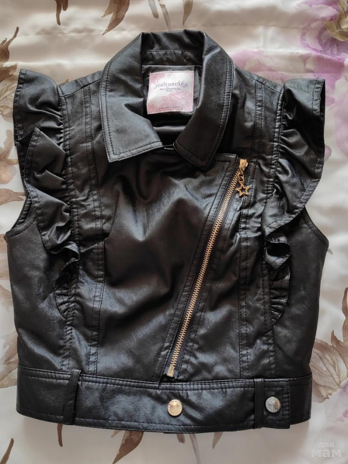 Стильный рокерский жилет. Маркировка 158,мы надевали от 146. Состояние идеальное. Между проймам и 39 см, талия - 33,5. 600 рублей