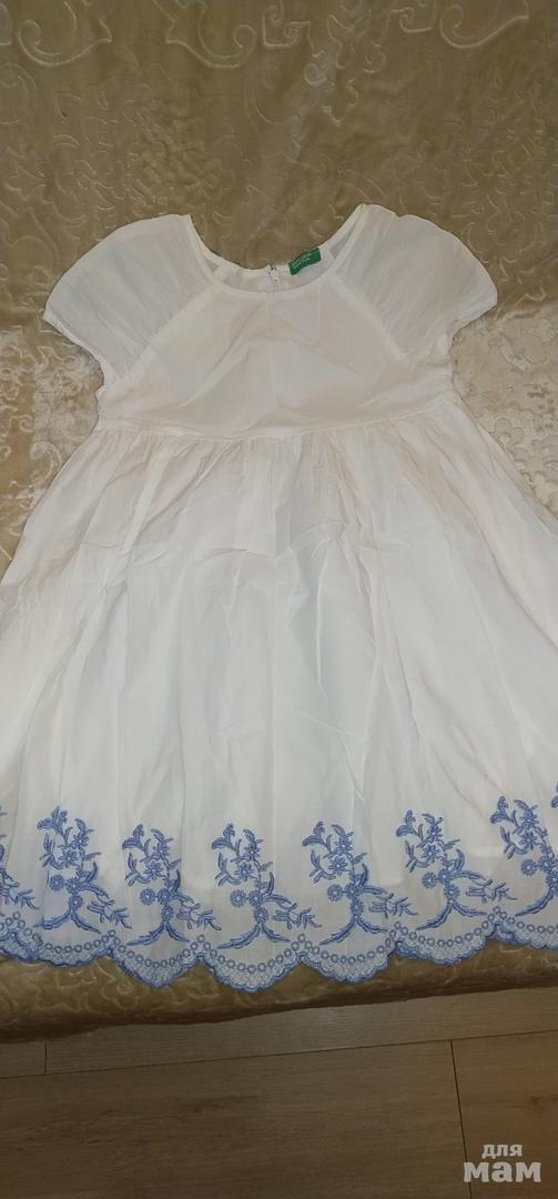 Платье фирмы Benetton,100%хлопок с хлопковым подкладом.Очень красивое и нежное,вышивка делает платье ещё более воздушное.На рост 122-128.Свободного кроя.