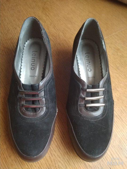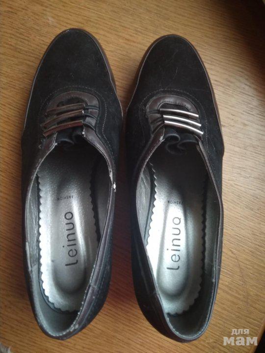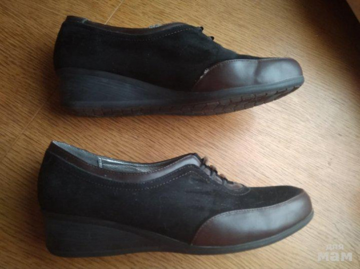 Женские закрытые туфли, б/у мало. Состояние хорошее. Незначительные дефекты видны на фото. Материал комбинированный, черная часть - типа замши. Спереди небольшие резиночки. Очень удобные и комфортные. Смотрятся очень симпатично.