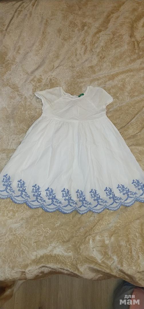 Платье бенитон,р.122,свободного кроя,очень красивое и лёгкое,материал 100%хлопок,подкладка тоже хлопок.Смотрится очень нежно и состояние отличное,одевали 1 раз.