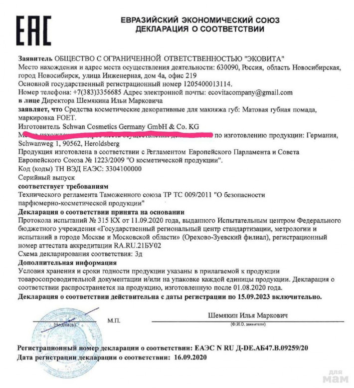 Это декларация серии Foet. Посмотрите повнимательнее на изготовителя *Schwan Cosmetics GmbH*