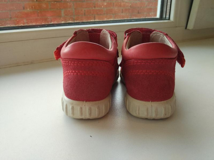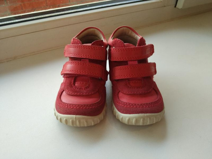 Длина стелечки 14 см. Кожаные снаружи и кожаные внутри. Отличный вариант на осень-весну. Одевать на маленькую непоседу очень удобно за счет липучек :)
