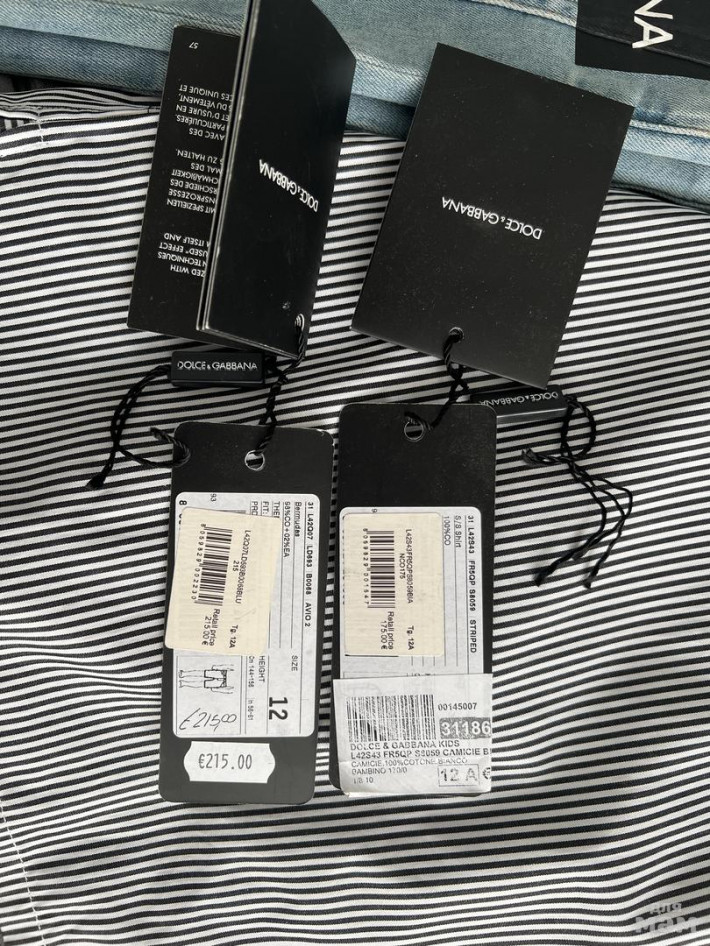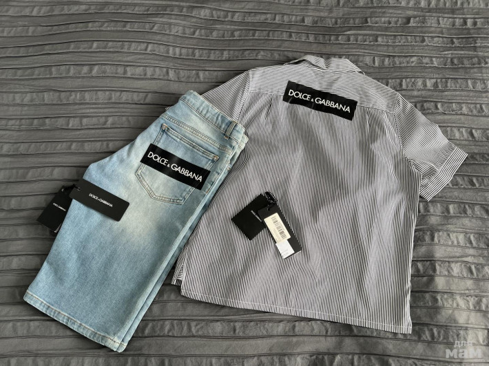 Комплект dolce Gabbana, оригинал, в идеальном состоянии, одевали пару раз, быстро выросли, маркировка 11/12 лет, шорты тянутся, также на талии есть утяжка, стоил очень дорого, моя цена 10000 только вместе, без торга