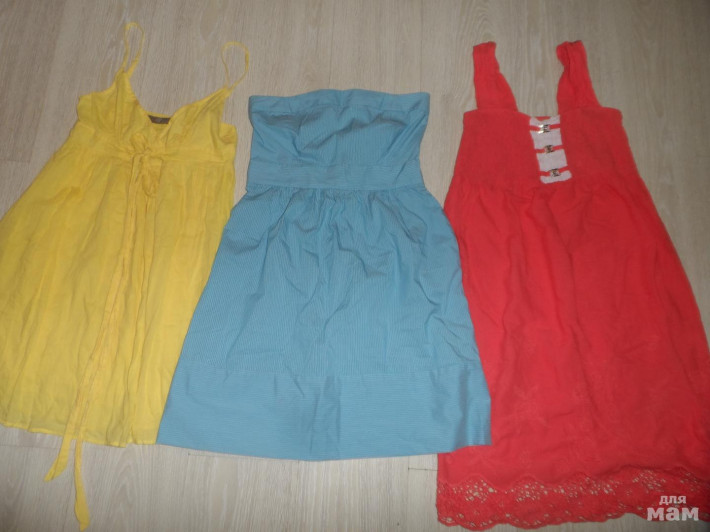 Предлагаю красивые вещи в хорошем или новом состоянии мало б/у на размер S или М.Стильные и красивые платья, хорошо сидят. Черное платье PIMKIE Италия и светлое с цветами CAMEO ROSE, платья и нарядные, и легкие на все случаи жизни. Цена за оба 999 руб. Отдельно по 550 руб. Желтое, голубое и красное по 250 руб. Все сразу 3 за 600, а все 5 за 1500 руб. Доп. фото по запросу.