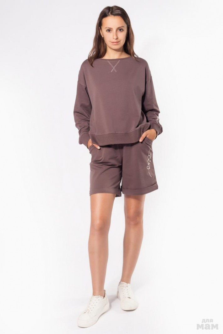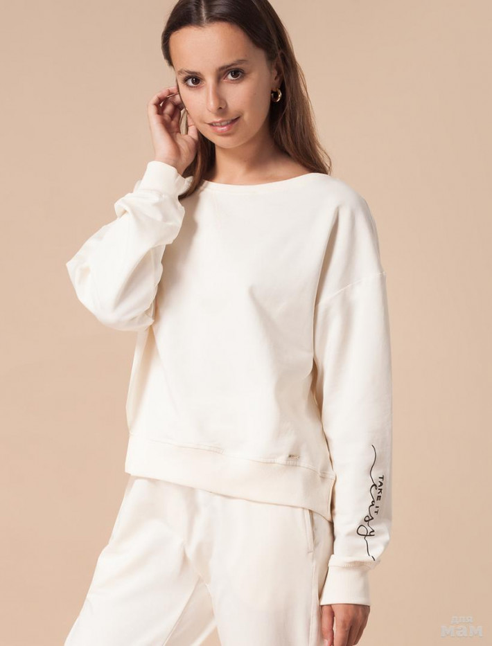 Укороченный свитшот из футера-двухнитки с минималистичным принтом. Горловина, манжеты и низ изделия из эластичной рибаны без натяжения.