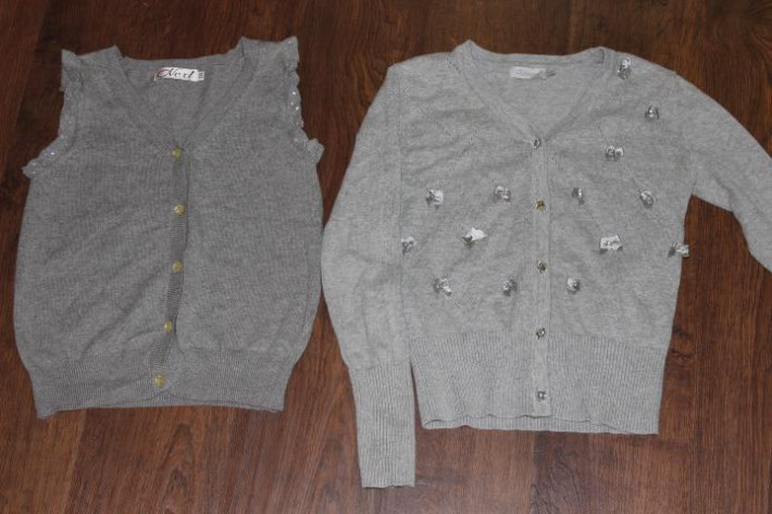 2фото жилет рост134 см-400 руб,кардиган(отскочило несколько бантиков) рост140-500 руб..