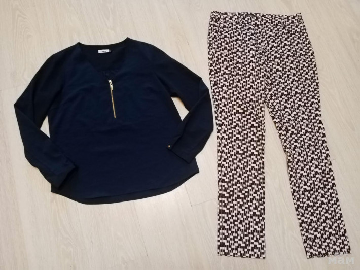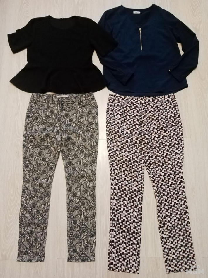Предлагаю стильные и красивые комплекты на размер 44-46, составленные мной, брюки 44, блузы 46 в очень хорошем состоянии. При покупке обоих комплектов цена по 750 рублей за любой. Или можно выбрать другой комплект в профиле. Слева чёрная блуза с баской НэндМ и классные брюки Stehmann из Европы мало б/у. Справа блуза Only и брючки Manguun мало б/у без следов носки. Смотрятся очень красиво, на все случаи жизни. Смотрите профиль, много интересных предложений. За опт скидки. Почтой высылаю. Смотреть в Раменском. В Москве сейчас бываю очень редко.