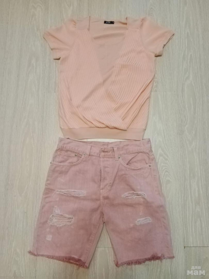 Предлагаю классный летний комплект в хорошем состоянии, смотрится стильно и небанально, пойдет на размер 46 и на 46-48. Шорты НэндМ, блуза Остин. Цена 730 за комплект. Самовывоз Раменское или почта.