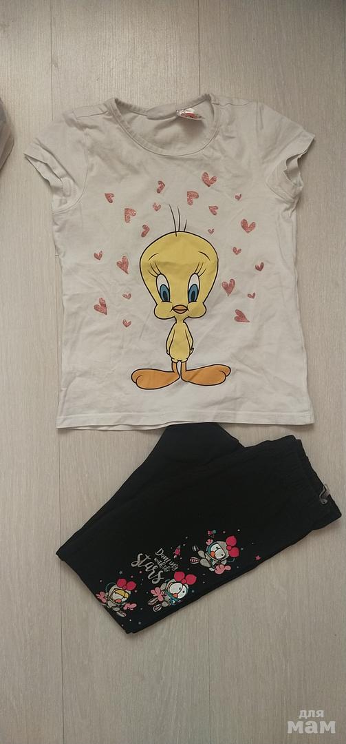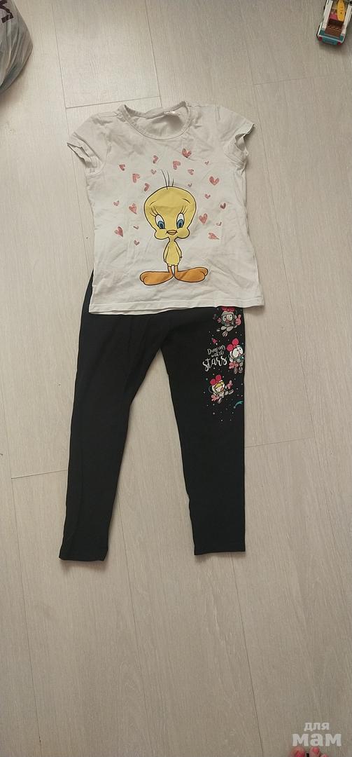 Продам комплектом футболку и лосины на рост 116.Состояние хорошее без дыр,дефектов и прочих изъянов, единственное нужно погладить.
