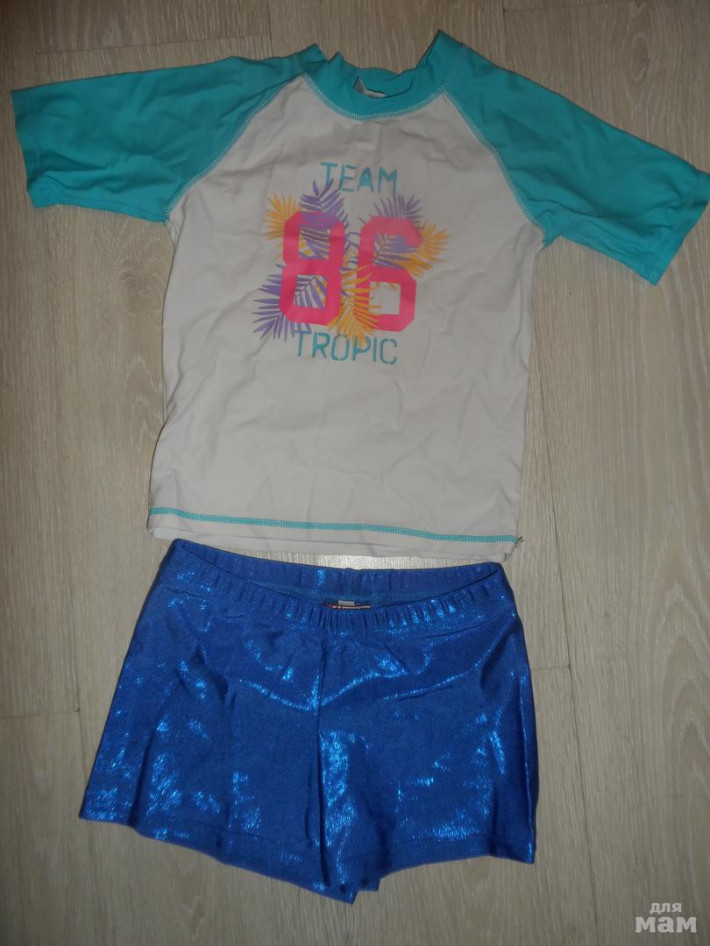 Последнее фото. Шорты из Америки BUCK"S BAGS четкие, красивые, праздничные на 6-9 лет, на худышку и дольше, переливаются. Цена 280 руб. Рубашка-футболка для плавания с защитой от солнечных лучей, вещь отличная и незаменимая на море ALIVE маркировка 110-116 см, можно дольше носить. Была на море 2 раза. Цена 250 руб. Вместе за 480 руб.