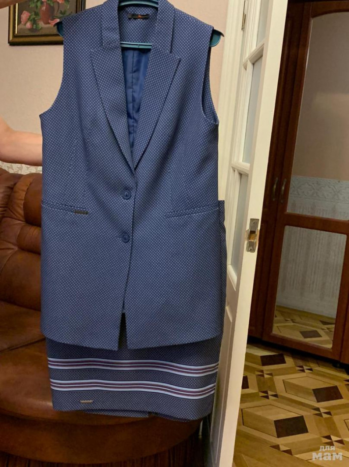 Продам костюм фирмы Бизнесс Лайн , размер жилета 52, юбки 50. Ткань шелковистая, отличного качества, очень красивый. Надевала 1 раз.
