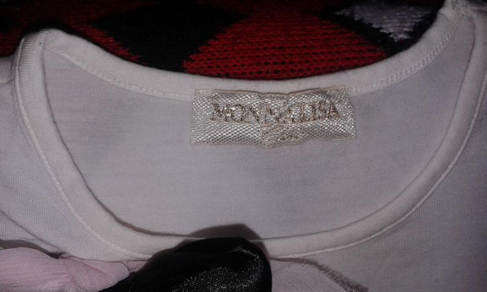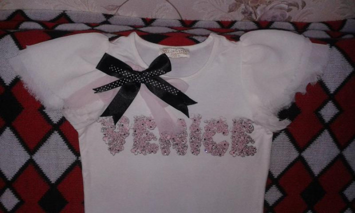 Футболка очень нежная и нарядная ф. Monnalisa р.4 не носили (поместила в категорию б/у, так как этикетки и т.п. сняты +пару раз мерили + года 2-3 пролежала в шкафу, покупали на 4 года к юбочке и белым брюкам, но оказалась велика, убрали в шкаф и всё… как-то новое потом носили и она не пригодилась), я думаю что больше подойдёт на 5-7 лет, надпись с стразами на груди, своеобразный крой у рукавов и розового бантика - края как бы просто обрезаны и не обрамлены, и ткань как бы слегка распускается (не знаю как понятнее объяснить, но в принципе на фото видно).