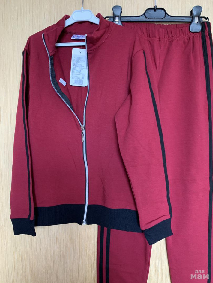 Качественный трикотажный костюм бордового цвета с чёрными лампасами