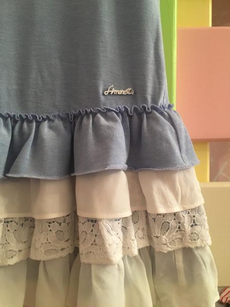 Симонетта, небесно-голубое платье, Состав:49% Хлопок, 46% Лиоцелл, 5% ЭластанОчень стильное, нежное, красивое. Сидит на ребенке изумительно.Надевали 2 раза. Дефектов и нюансов нет.Цена 3000руб.+почта 280Маркировка 6 лет
