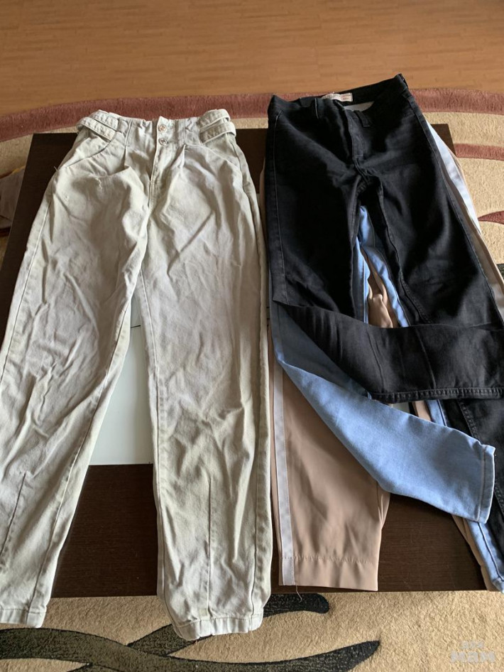 Бершка р.32 светлые 800₽, отличная посадка, глория р.12-13/158, цена 500₽; синии denim р.42-44 цена 400₽; брюки светло-беж с лампасами цена 300₽. За все 1600₽. Почта и др, самовывоз Павловский Посад