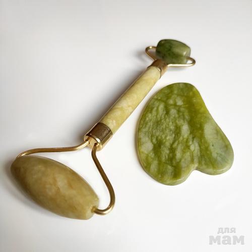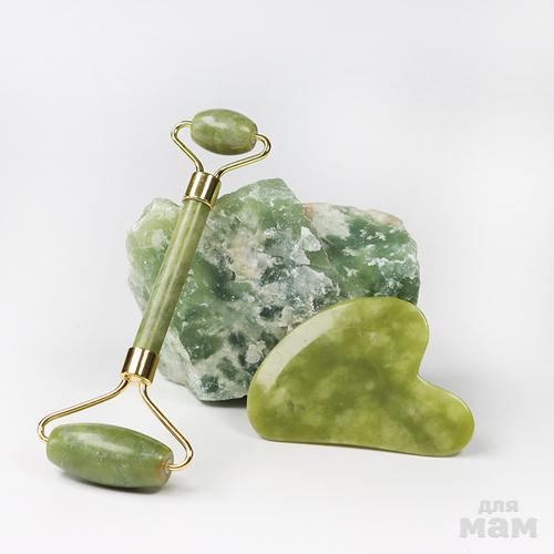 Массажный набор для лица и тела Гуаша, нефритовый роллер и скребок.