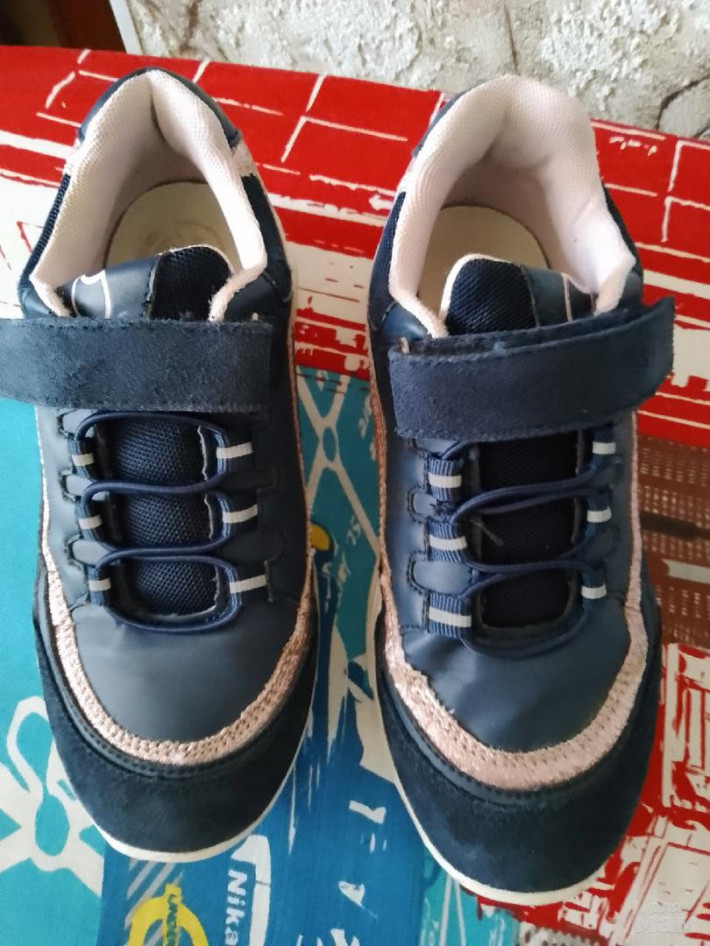 Котофей! Бу состояние хорошее.Внутри кожаная,ортопедическая стелька.Сверху искусственная кожа+ замша натуральная.Покупались по полной цене новыми Размер 33. Цена 500+ почта. Коробки нет.Так и покупались.Могу в другой какой нибудь отправить если надо