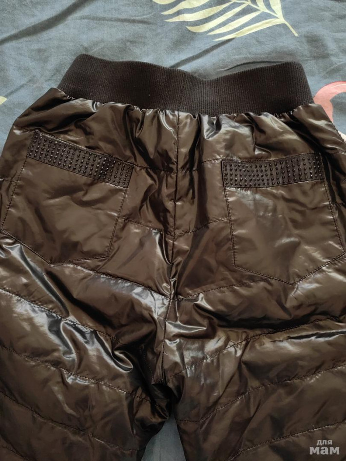 Тёплые штаны. Идеальные! Дочь носила такие в школу зимой. Легко надеть, пояс резинка. Занимают мало места, можно свернуть трубочкой. Лампас из трикотажа, хорошо садятся. Украшены стразами. Штанины не широкие, дочь спокойно заправляла в сапоги. Маркировка 150. Состояние отличное