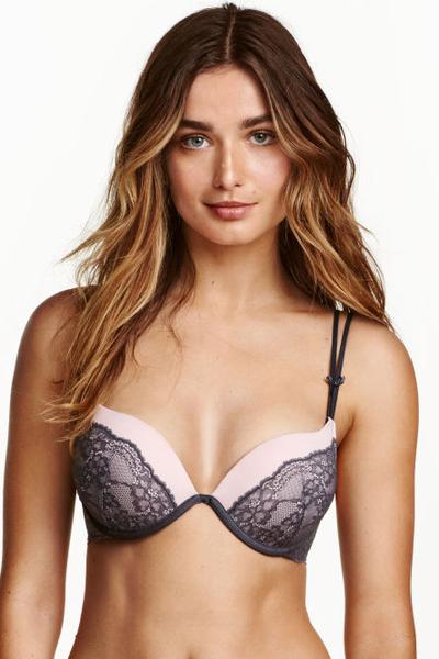 Бюстгальтер супер пуш-ап из микрофибры с чашечками, частично отделанными кружевом, а также кружевом сзади. Чашки уплотненные, на косточках, максимально увеличивают бюст и подчеркивают декольте. Узкие регулируемые бретели, спереди разделяются.