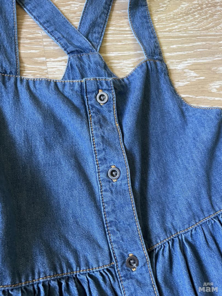 Джинсовый сарафан acoola, размер 128, до роста 132-134см. подойдёт. Пуговки полностью расстегиваются. Материал плотный, не тоненький. В отличном состоянии.
