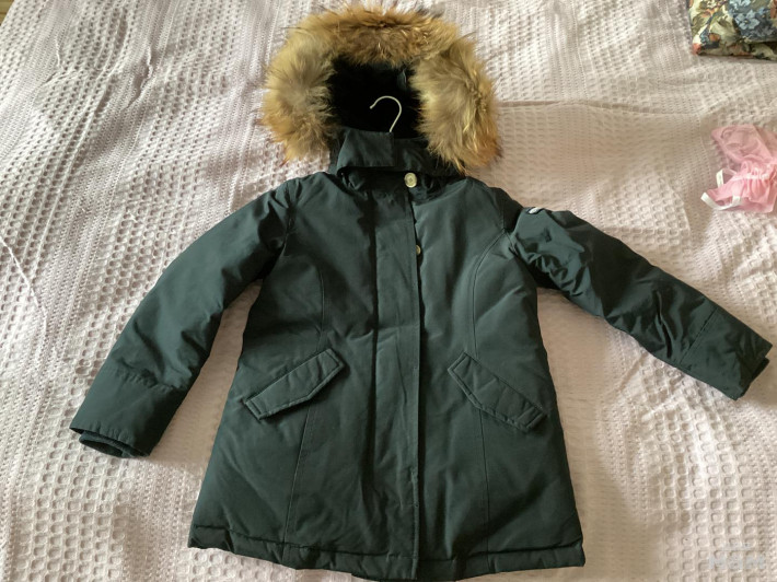 треплющий пуховик в отличном состоянии, цвет темно синий