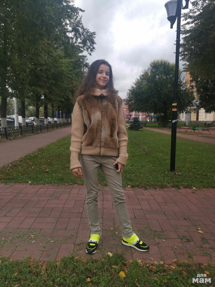 А так классная вещица, поехать с классом в музей, ходить к репетиторам , с джинсами, с брюками подходит ко всему.....