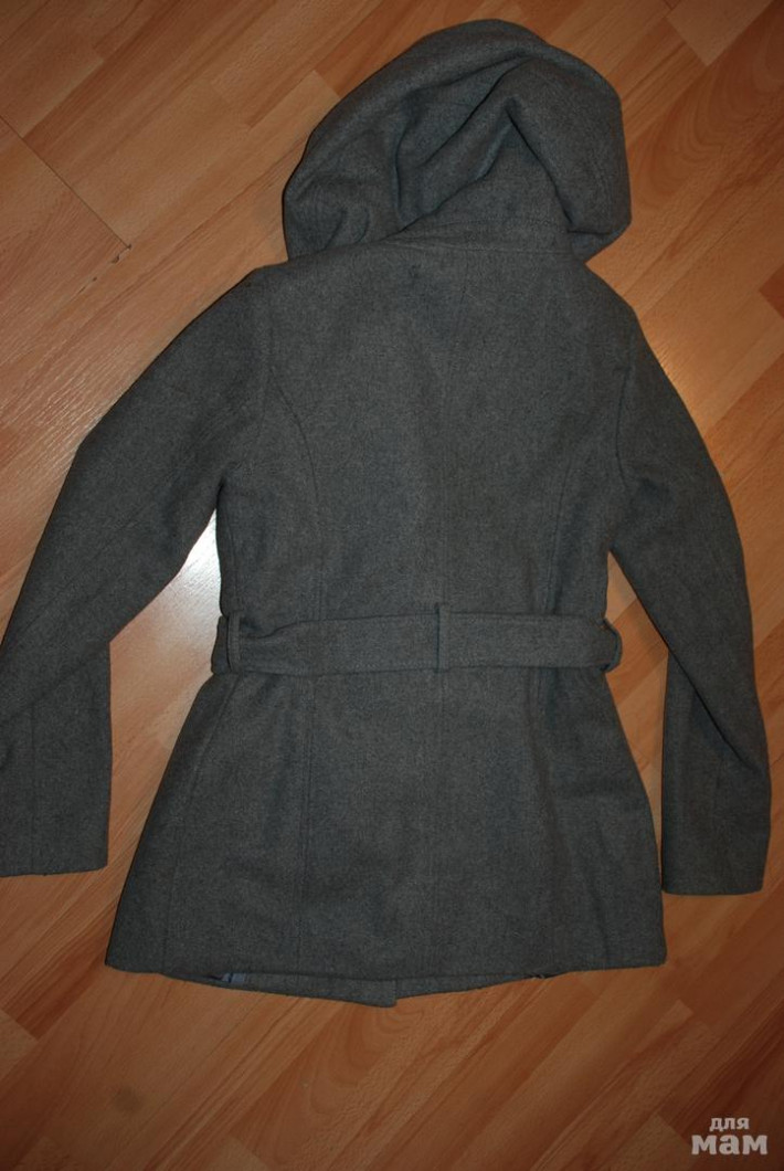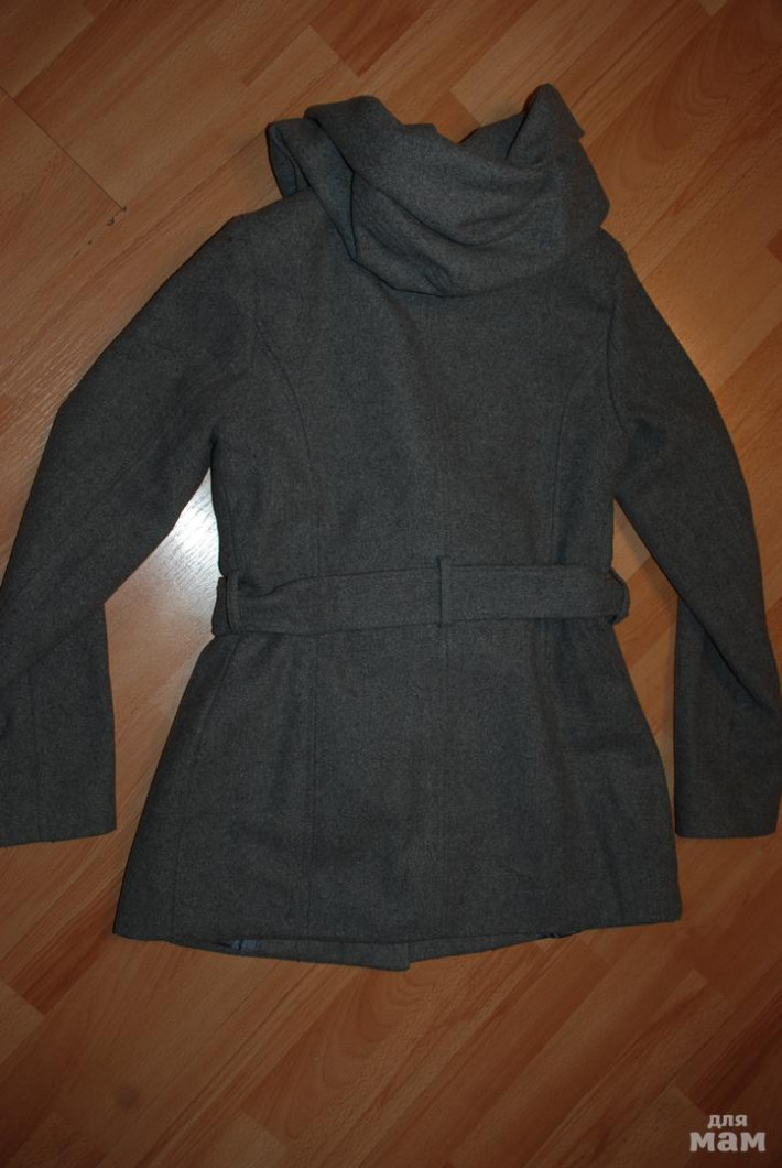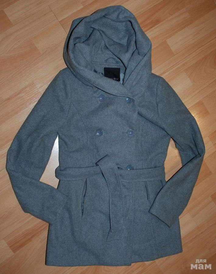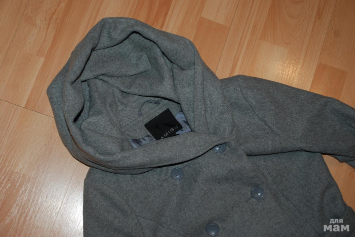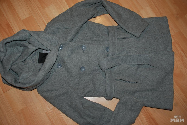 С капюшоном, который красиво ложится вокруг шеи как воротник. Уютное.