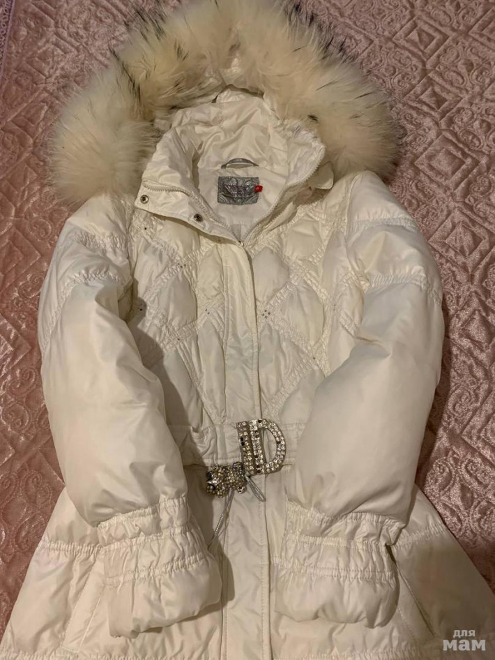 Очень красивое белоснежное пальто известного дорогого итальянского дизайнера Laura Biagiotti. Стоило очень дорого. Мех натуральный. Из нюансов только отсутствие нескольких страз на пряжке и на самом пальто. Можно конечно было восстановить, купить стразы и приклеить - но совсем некогда. Все поправимо. На мишке не хватает маленькой детальки - ножки, но это не очень заметно и не критично. Носили мало. В отличном состоянии. Мех шикарен. Теплое, на осень, не сильно морозную зиму, и на весну - самое оно. Нарядное, красивое, можно стирать в стиралке. Очень практичное. Носили очень мало, тк много было разных верхних нарядов. Быстро выросли. Мех отстегивается. Очень нежное. Для настоящей принцессы.