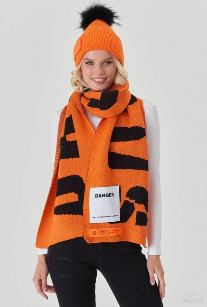 Шикарнючий зимний комплект в рыжем цвете. Шарф огромный))