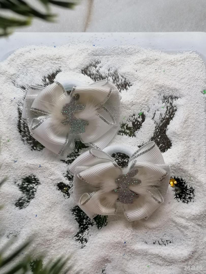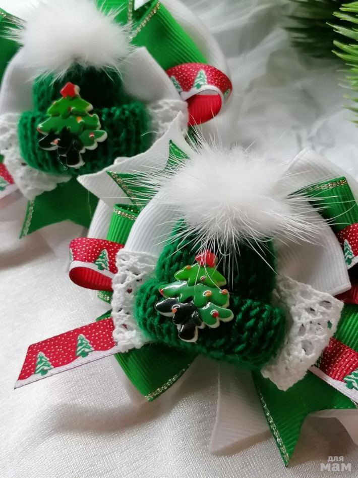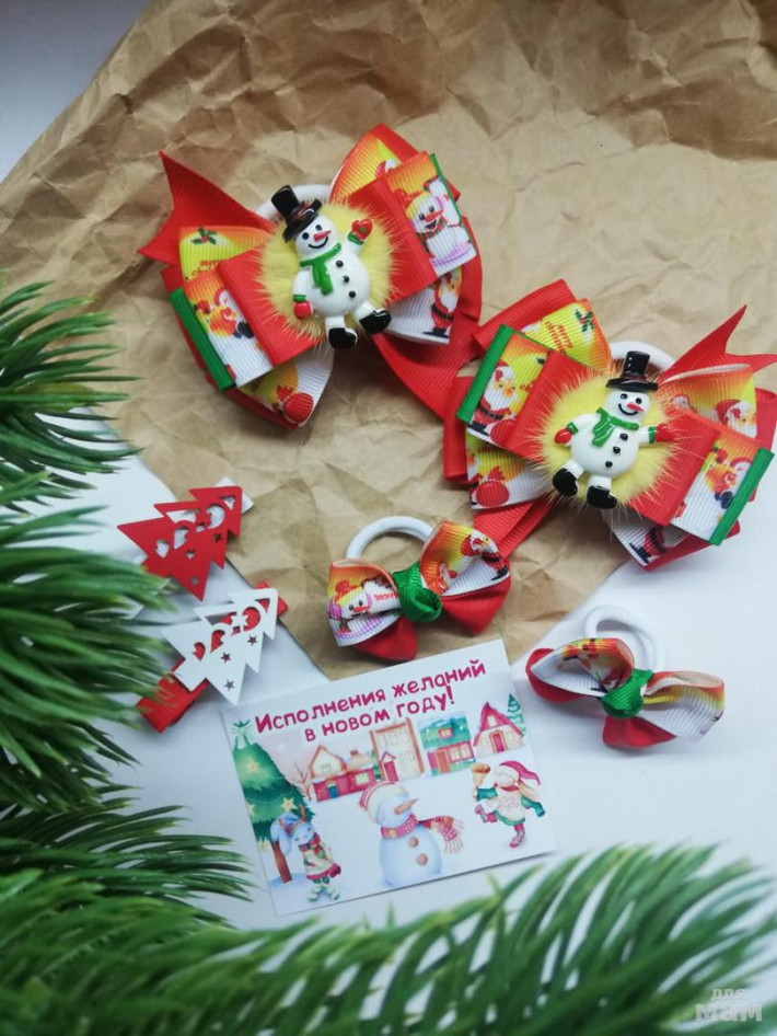Большой набор из двух пар бантиков и пары заколок. Яркий, красивый, праздничный. Набор поднимет настроение и раскрасит сочными красками зимние будни.