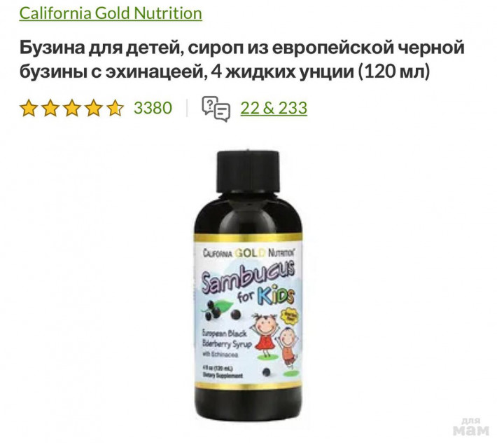Сироп бузины с эхинацеей 830 руб